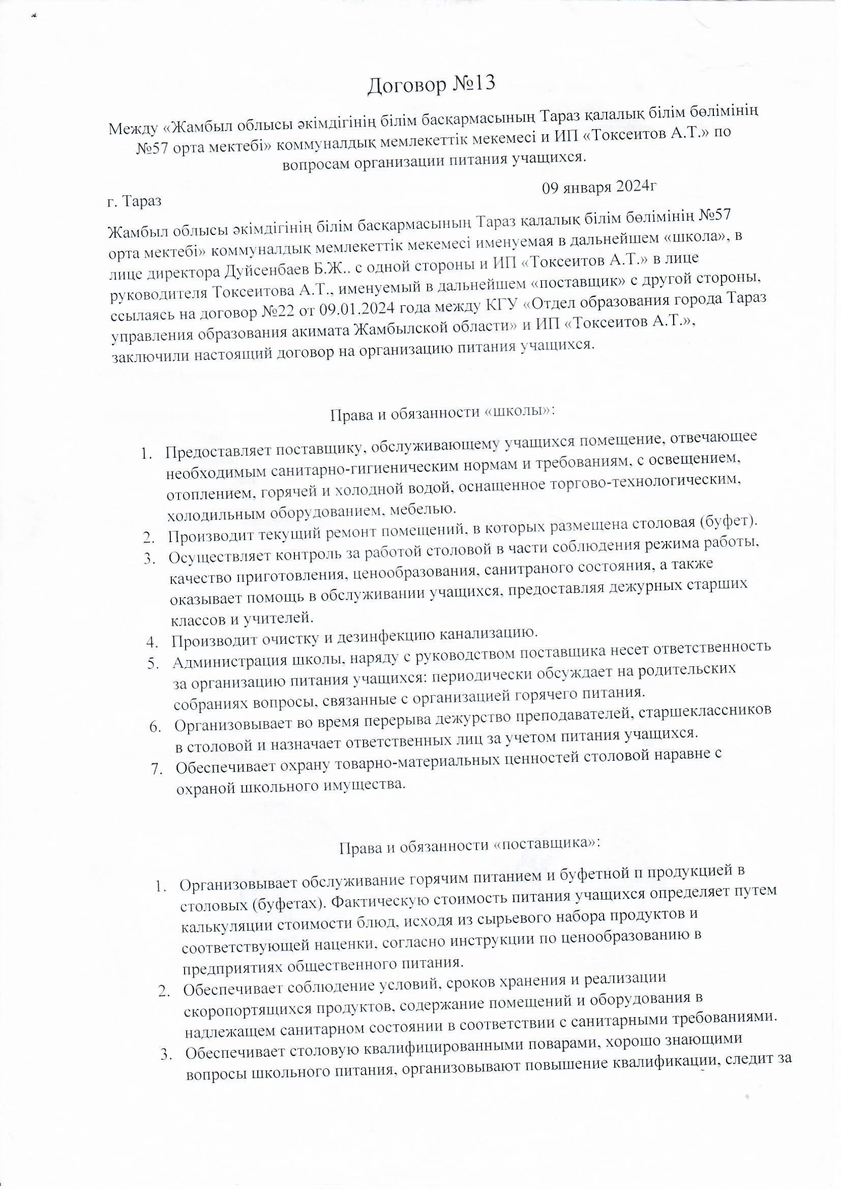02 сентябрь 2024 0 1 2 3 4 5 2024-2025 оқу жылында №57 орта мектепті ыстық тамақ өнімдері жеткізушімен келісім шарт