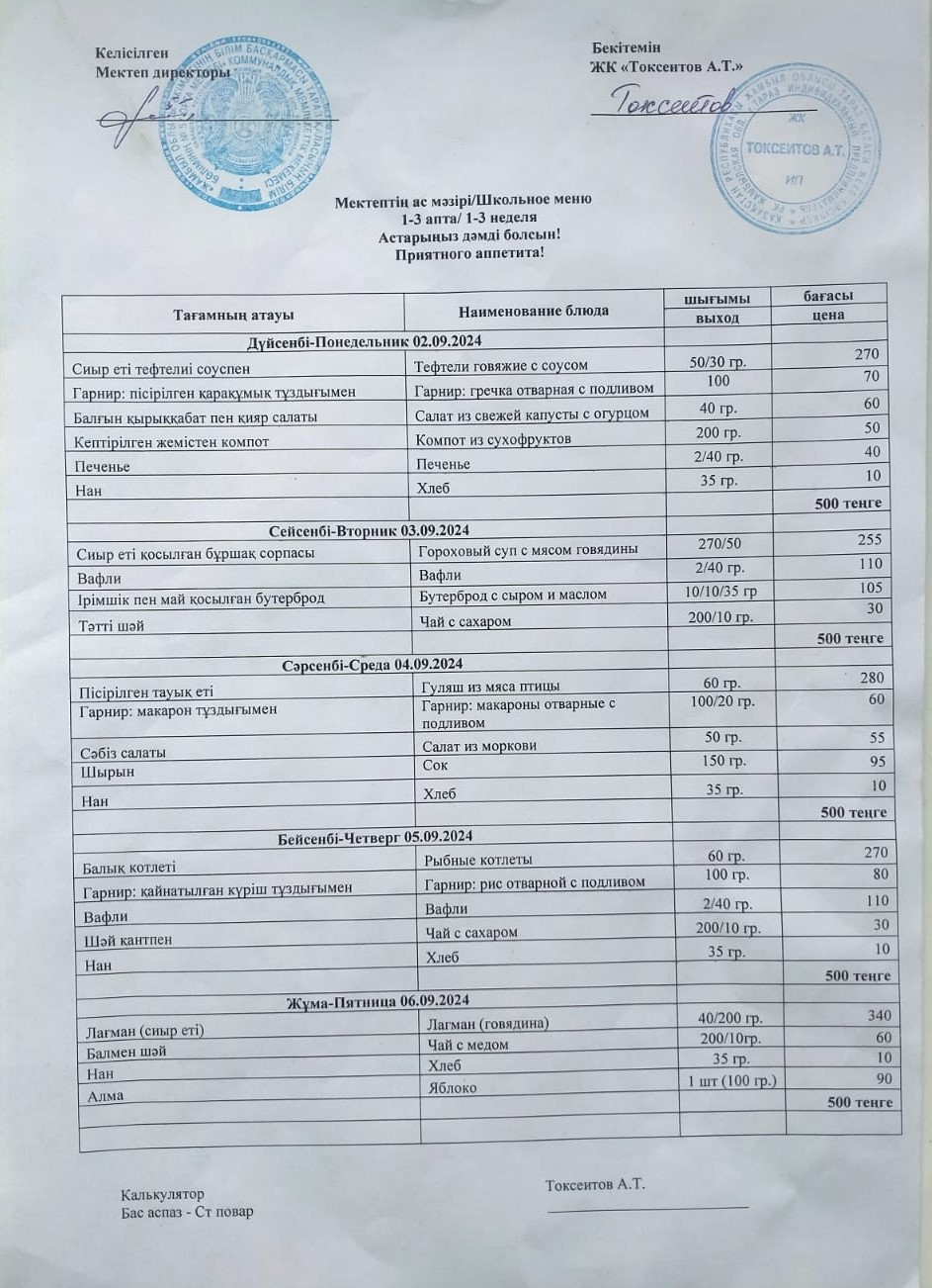 02.09.-06.09.24 аралығындағы ас мәзірі