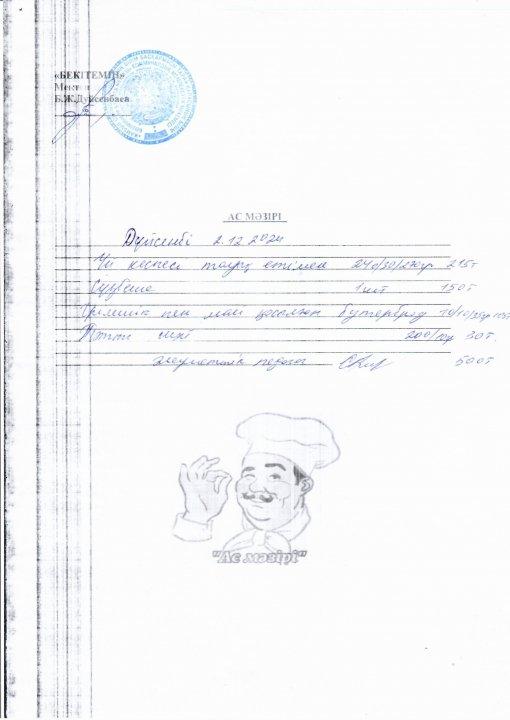 02.12.2024-06.12.2024 аралығындағы ас мәзірі