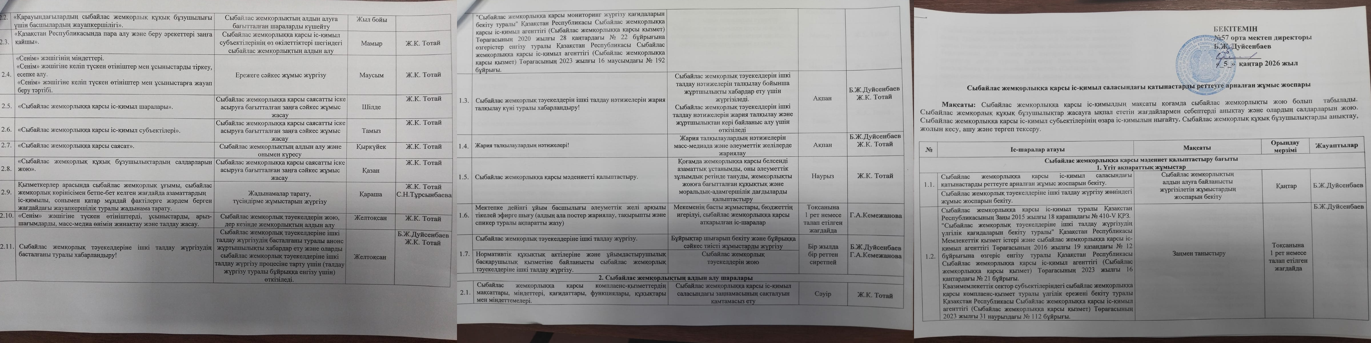 05 январь 2026 0 1 2 3 4 5 Сыбайласжемқорлыққа қарсы іс-қимыл саласындағы қатынастарды реттеуге арналған жұмыс жоспар